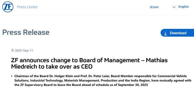 业绩低迷、积重难返下,采埃孚掌门人及商用车板块负责人不得不同时引咎辞职。 2025年上半年的业绩更是火上浇油。采埃孚营收下滑10%,息税前利润同比暴跌42%至3.67亿欧元,息 税前利润率也从去年同期的2.9%降至1.9%,显著低于佛瑞亚、法雷奥等欧洲同行,且净亏损1.95亿欧 元。面对盈利能力的下滑,以及巨额负债,采埃孚股东及监事会选择更换掌舵者,也就不足为奇了。 9月11日,采埃孚官宣,现任董事长兼CEO柯皓哲(Holger Klein)将于9月30日提前结束任期,离开董 事会。继任者为电驱传动技术事业部负责人马蒂亚斯·米德莱希(Mathias Miedreich)。与此同时,采埃 孚商用车解决方案事业部负责人彼得·莱尔(Peter Laier)也被终止董事会成员职务。 巨债缠身,财务指标恶化 对于上述结果,业内并不感到意外。毕竟,随着采埃孚的财务危机愈演愈烈,今年7月底,采埃孚曾爆 发上万人的示威游行。据德国《经济周刊》报道,当时采埃孚员工对管理层表达了强烈不满,并宣泄出 洪水般的愤怒,高喊:"董事会下台!董事会下台!"采埃孚工会主席Achim Dietrich更是直接将矛头对 准身为CEO的柯皓哲。 ...