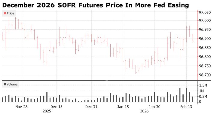 周二,在总统日长周末假期结束后,美股市场恢复交易。市场数据显示,与美联储短期基准利率挂钩的 隔夜担保融资利率(SOFR)期货看涨期权以及美国国债期货看涨期权均出现大量买盘,这些期权有望从 市场上涨中获利。 RJ O'Brien & Associates的衍生品经纪人Alex Manzara表示,周二SOFR看涨期权的买盘"非常活跃"。他 指出,买入下半年到期的期权合情合理,因为预计届时特朗普总统提名的美联储主席人选凯文·沃什将 接替杰罗姆·鲍威尔。 最受欢迎的看涨期权包括2026年12月到期的SOFR期货(约10万份)和2026年9月到期的SOFR期货(约5万 份),两者的行权价均为98。在一年期曲线中部期权中,其参考标的为一年后的期货合约,至少有5万份 2026年9月到期和2026年12月到期、行权价为98的看涨期权被买入。 Manzara表示:"我个人的理解是,一些相当聪明的人正在大量买入看涨期权,因为他们认为未来可能会 出现一个问题,导致美联储在降息方面采取比市场目前定价更为激进的措施。" Mark IV Brokerage LLC 利率期权销售高级副总裁Todd Colvin周二在给客户的信中写道,交 ...