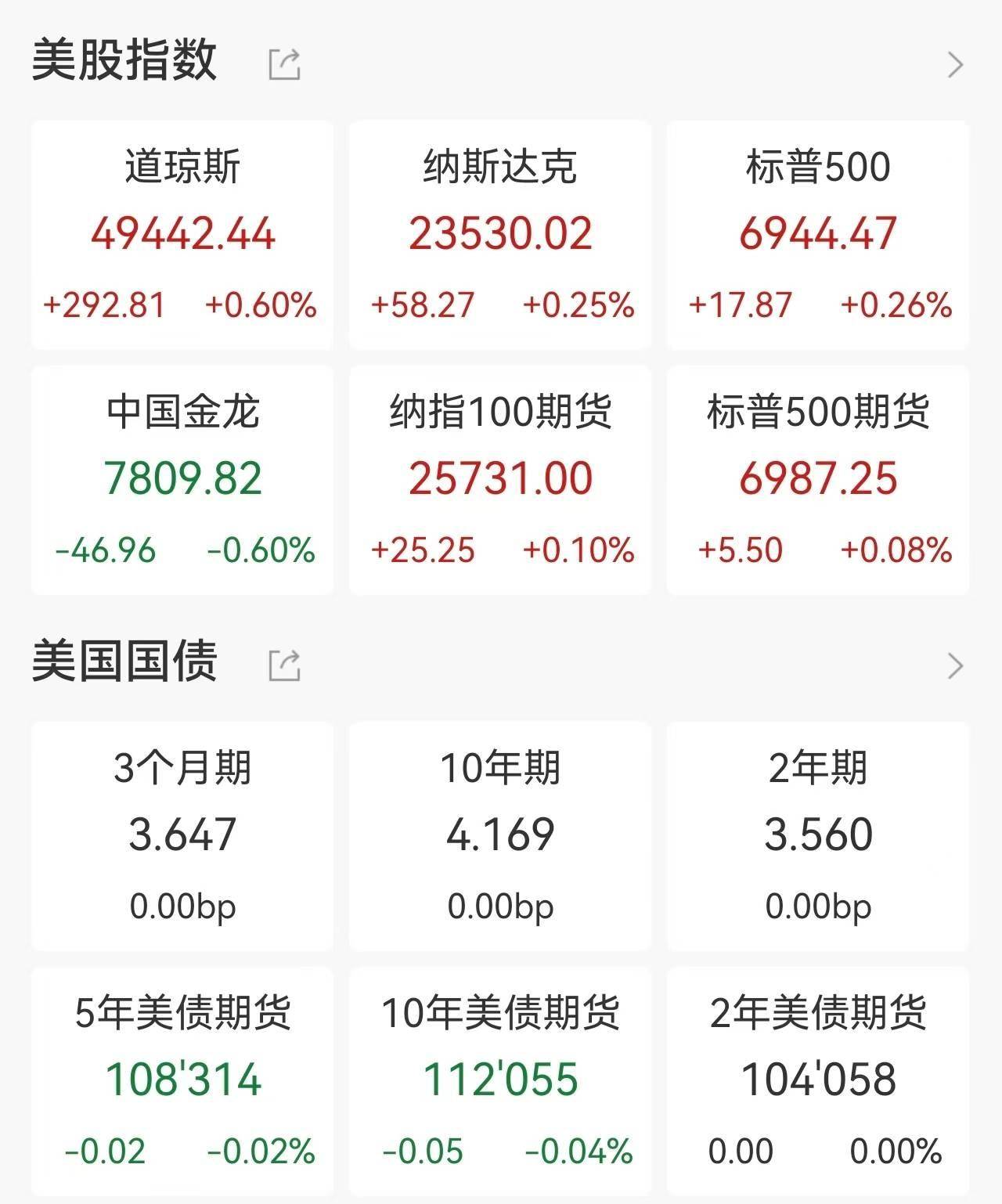 美股三大指数集体收涨,道指涨0.60%,标普500指数涨0.26%,纳指涨0.25%。芯片股在台积电亮眼财报推动下上涨,应用材料、阿斯麦涨超5%,台积电涨 超4%,英伟达涨超2%。银行股走强,贝莱德、摩根士丹利涨超5%,高盛、花旗涨超4%。 纳斯达克中国金龙指数收跌0.6%,热门中概股多数下跌,网易、携程、有道跌超2%,京东跌1.4%,百度跌0.7%,哔哩哔哩跌0.6%,阿里巴巴涨0.6%,理想 汽车、小鹏汽车、蔚来涨超1%。 ...