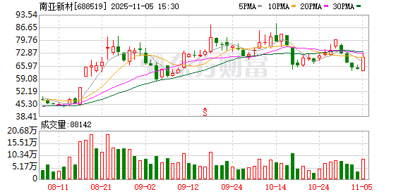 南亚新材11月5日大宗交易平台出现一笔成交,成交量30.00万股,成交金额2088.30万元,大宗交易成交 价为69.61元,相对今日收盘价折价1.50%。该笔交易的买方营业部为中信建投证券股份有限公司北京东 三环中路证券营业部,卖方营业部为中信证券股份有限公司上海分公司。 进一步统计,近3个月内该股累计发生2笔大宗交易,合计成交金额为2445.44万元。 证券时报·数据宝统计显示,南亚新材今日收盘价为70.67元,上涨9.98%,日换手率为3.75%,成交额为 5.96亿元,全天主力资金净流入7537.53万元,近5日该股累计下跌11.77%,近5日资金合计净流出 4002.08万元。 两融数据显示,该股最新融资余额为1.99亿元,近5日减少1507.89万元,降幅为7.04%。 据天眼查APP显示,南亚新材料科技股份有限公司成立于2000年06月27日,注册资本23477.1002万人民 币。(数据宝) 11月5日南亚新材大宗交易一览 | 成交量 (万 | 成交金额 | 成交价 | 相对当日收盘 | 买方营业部 | 卖方营业部 | | --- | --- | --- | --- | --- | --- | ...