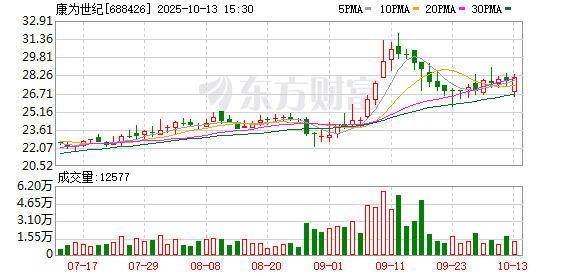 康为世纪大宗交易成交15.91万股 成交额447.39万元