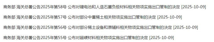 商务部、海关总署:暂停稀土等多项出口管制公告的实施