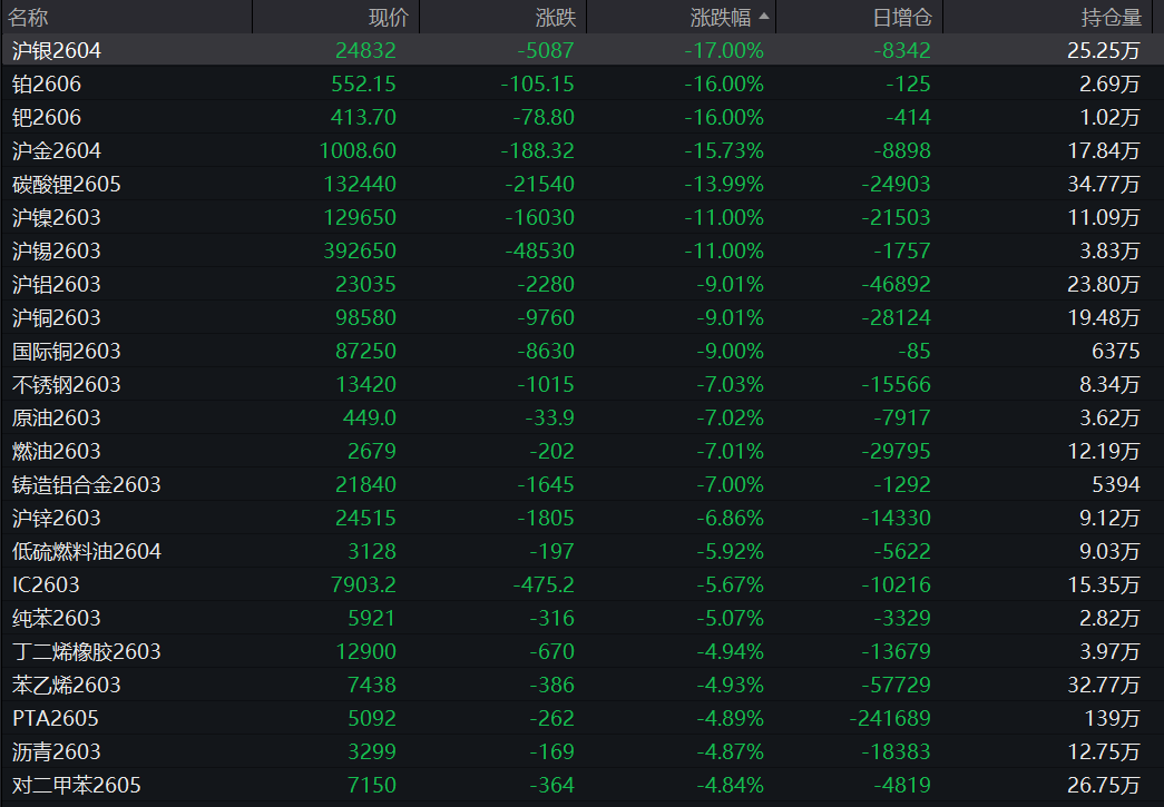投资咨询系列报告 山金期货贵金属策略报告 更新时间:2026年02月02日16时12分 报告导读: 今日贵金属几乎全线跌停,沪金主力收跌15.73%,沪银主力收跌17%,铂金主力收跌16%,钯金主力收涨跌16%。①核心逻辑, 短期避险方面,贸易战与地缘异动风险短期缓和,中长期仍存;新联储主席预期偏鹰,美国就业走弱通胀压力仍存,降息预期渐近 尾声,缩表预期重创贵金属。②避险属性方面,前期围绕格陵兰岛资源争端及北美贸易关税摩擦的地缘紧张局势在近日出现缓和迹 象。最新特朗普称俄对乌部分地区停火一周,贸易战与地缘异动风险短期缓和。③货币属性方面,特朗普提名前美联储理事沃什接 替鲍威尔,新提名引爆鹰派预期,其主张缩减资产负债表并对降息持谨慎态度,贵金属遭遇史诗级抛售。美国12月PPI创五个月来 最大环比涨幅,意味着未来数月通胀可能加速,让美联储能够在一段时间内维持利率稳定。目前市场预期美联储降息年内完成,下 次降息或到6月。美元指数和美债收益率低位反弹;④商品属性方面,关注银铂钯需求证伪风险。白银受到供应偏紧支撑。铂金氢 能产业铂基催化剂需求预期强劲。钯金短期需求仍有韧性,长期面临燃油车市场结构性压力。CRB商品指数震 ...
