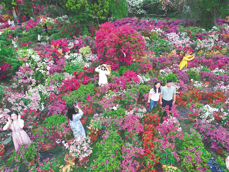 2月27日下午,天阴着,飘点小雨。虽然春节假期已过,但万宁万城镇溪边村的花香没散,人气也没散。 王青青在溪边书屋支起了咖啡摊。她是兴隆青青咖啡的主理人,年前刚入驻这里。 百福园里堆着石头,每块石头上刻一个"福"字,各种写法都有。"我们将书法融进了三角梅。溪边书屋、 源头活水打卡点、咖啡店里,以及家家户户挂的楹联,都是书法。腊月二十六刚办了写春大会。"吴挺光说, 他还在这里建了个椰派中国画写生基地。 趁着假期到溪边村游玩打卡的游客林云是当地的一名语文老师。"花海、书法交织出别样乡村风情。"她 告诉记者,"上学期组织学校文学社30多名学生来采风,作品发表在校报上,实地体验丰富学生素养。" 2月27日,游客在万宁溪边三角梅花海中拍照。记者 林博新 摄 溪边村因小溪从旁流过得名,更因三角梅闻名。"今年花开得好,开了将近400种。"溪边种养专业合作社 社长文盛飞介绍。2013年,他带头成立合作社,2014年开始种三角梅,2016年搞乡村旅游。 除了"文化",溪边三角梅结的"果",还有"文旅"。 文盛飞说,村里的三角梅能火,离不开媒体和自媒体的宣传。"游客被美景吸引,自发发布短视频,吸引 了各地众多游客。尤其是北方人,很 ...
