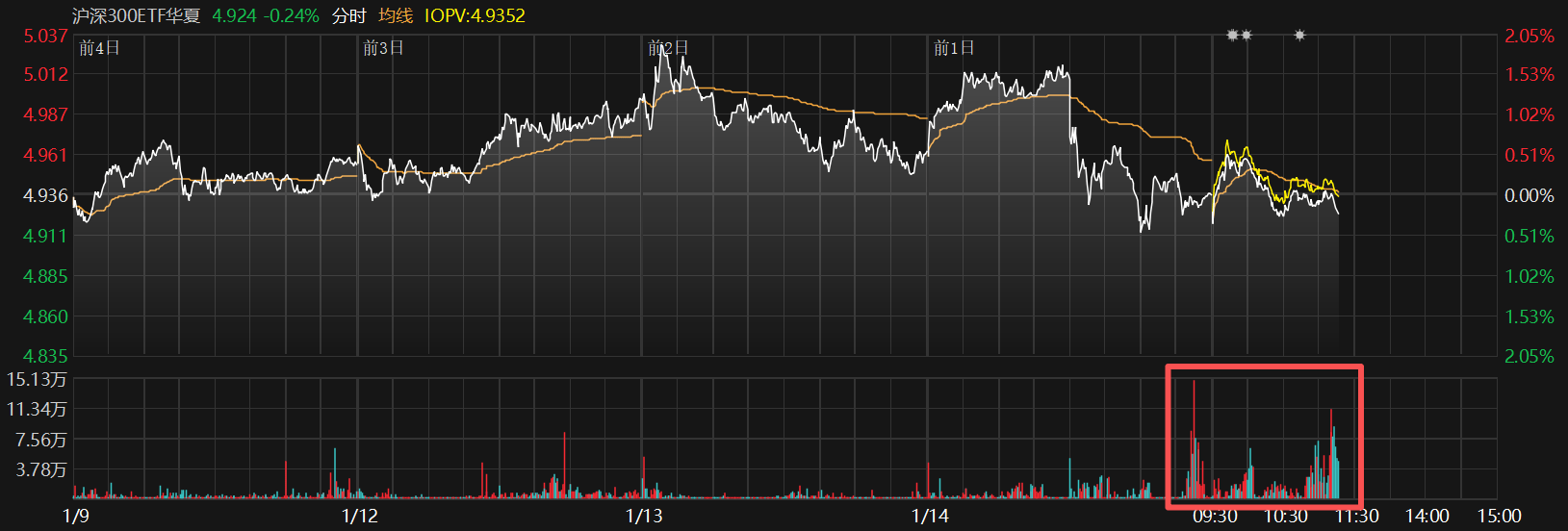 华夏基金投资者回报研究中心表示:复盘2024年9月及2025年8月,市场成交额突破3万亿大关、快速上涨的行情,赚钱效应有力激发了人气,即使后续大盘 步入震荡,市场依然活跃一段时间。对于普通个人投资者,参与主题投资难度较大,可以选择宽基如沪深300指数ETF锚定大势。 1月15日早盘,前期强势的AI应用、商业航天退潮,沪深300ETF持仓股中国卫通、润泽股份、用友网络等板块权重股跌超8%;与此同时,此前处于震荡的 半导体设备、新能源及周期(锂电、化工)方向回暖,沪深300ETF持仓股紫光国微涨停,其余持仓股华友钴业、江西铜业、赣锋锂业、中国巨石、洛阳钼 业均上涨超4%。 另外,值得注意的是,沪深300ETF华夏(510330.SH)盘中下探时,成交显著放量,或有资金逢低入场。据悉,沪深300指数汇集了沪深两市大盘蓝筹股, 传统蓝筹+新质生产力均衡分布,是A股标杆性指数,也是类平准资金的"压舱"资产。沪深300ETF华夏(510330.SH)为全市场同类标的费率最低,充分让利 投资者。 每日经济新闻 【免责声明】本文仅代表作者本人观点,与和讯网无关。和讯网站对文中陈述、观点判断保持中立,不对所包含内容的准确性、可 ...