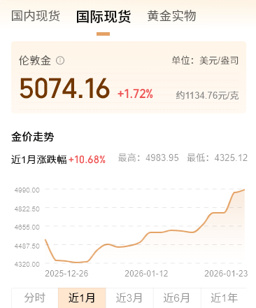 但专家也发出预警:短期涨幅过猛,技术性回调风险积聚。独立财经评论员赵欢提醒,普通投资者切勿 盲目追高,"黄金不是投机工具,而是对冲不确定性的压舱石。" 历史性一幕来了!1月26日,现货黄金价格一举冲破5000美元/盎司大关,创下人类有史以来最高纪录。 白银同步飙升至103.85美元,贵金属市场全线沸腾。 这轮暴涨并非偶然。美联储降息周期开启,美元资产吸引力下降,黄金"零利息"的机会成本大幅降低; 更关键的是,全球央行正疯狂囤金——中国已连续14个月增持,截至2025年12月,黄金储备达7415万盎 司。高盛最新报告直接将年底目标价上调至5400美元,直言"私人投资者与央行正在抢购有限的实物黄 金"。 站在5000美元关口,黄金已不仅是商品,更是全球信任危机下的"终极保险"。地缘冲突未解、债务压力 高企、货币信用承压——只要这些底层逻辑不变,黄金的牛市或许才刚刚启程。 但记住:别人恐惧我贪婪,别人贪婪我谨慎。此刻,比追涨更重要的是想清楚——你买黄金,到底为了 什么? 值得注意的是,本轮行情中,不少散户通过黄金ETF、积存金甚至首饰渠道入场。有珠宝店老板透 露:"最近连999足金项链都卖断货了,有人一次性扫走三根 ...