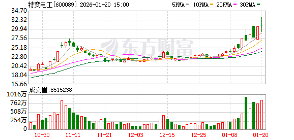 | 成交量 | 成交金额 | 成交价 | 相对当日收盘 | | | | --- | --- | --- | --- | --- | --- | | (万 | (万元) | 格 | 折溢价(%) | 买方营业部 | 卖方营业部 | | 股) | | (元) | | | | | 7.83 | 219.71 | 28.06 | -8.84 | 中信证券股份有限公司绍 | 华西证券股份有限公司长 | | | | | | 兴群贤路证券营业部 | 春前进大街证券营业部 | 证券时报·数据宝统计显示,特变电工今日收盘价为30.78元,上涨0.92%,日换手率为16.85%,成交额 为262.85亿元,全天主力资金净流出14.80亿元,近5日该股累计上涨12.46%,近5日资金合计净流出 80.15亿元。 两融数据显示,该股最新融资余额为80.72亿元,近5日增加22.35亿元,增幅为38.28%。(数据宝) 1月20日特变电工大宗交易一览 特变电工1月20日大宗交易平台出现一笔成交,成交量7.83万股,成交金额219.71万元,大宗交易成交价 为28.06元,相对今日收盘价折价8.84%。该笔交易的买方营业部为中信证券股份 ...