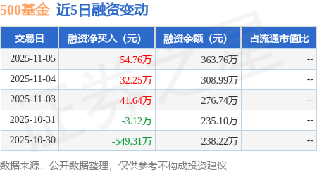 500基金:11月5日融资净买入54.76万元,连续3日累计净买入128.66万元