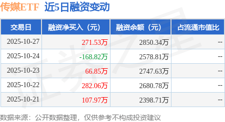 传媒ETF:10月27日融券净卖出4.5万股,连续3日累计净卖出59.54万股