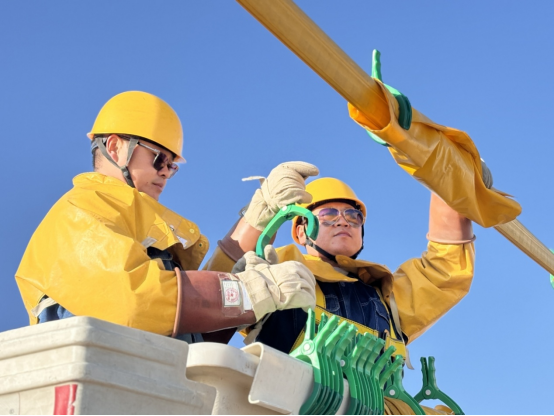 高空作业平台上,姬福成的绝缘披肩边缘已结出盐霜。此刻,他与搭档柴生悦要在不足 1平方米的绝缘斗内完成三相导线搭接。 姬福成首先对作业区域的线路、设备开展验电。"C相验电完毕,申请遮蔽!"他将绝缘 毯精准覆盖导线。此时,地面红外测温仪显示:斗内体感温度38摄氏度,两人安全帽内衬的 吸汗棉条早已浸透。 7月10日10时,在甘肃兰州新区110千伏空港变117红湾线61号杆塔下,随着绝缘斗臂车 液压装置发出均匀的运转声,国网兰州新区供电公司带电作业现场工作负责人尹飞亮仰头望 向12米高空——穿着黄色绝缘服的作业人员姬福成、柴生悦正站立在绝缘斗内,准备为铁塔 通信基站带电接通电源。 "今天的任务相当于在蒸笼里绣花!基站断电超1小时就会影响千兆数据传输,咱们必须 抢在11点前完工!"姬福成抹了把汗说道。 刺眼的阳光穿透云层直射下来,即使戴着护目镜,反光仍让柴生悦眯起双眼。"注意保 持安全距离!"地面监护人雷梦军手持望远镜紧盯作业点。 据了解,红湾线承载着兰州新区南部3座5G基站、医院及大型小区等重要用户的供电任 务。 姬福成反复校准风速仪,额头的汗珠一滴滴落在仪器屏幕上。"风速3级,湿度40%,黄 金作业窗口只剩1小时! ...