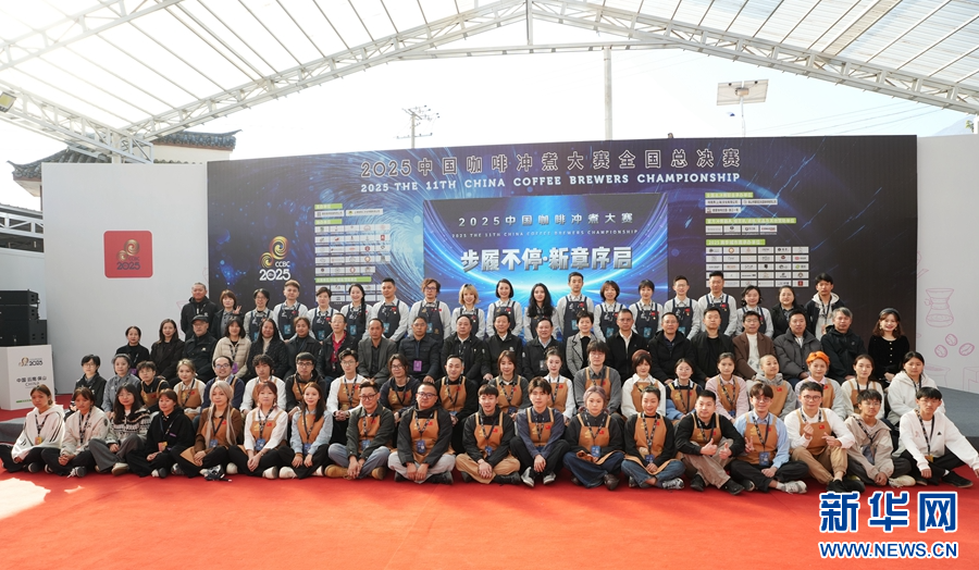 比赛现场,选手向评委介绍冲煮细节(摄于1月16日)。新华网发(郭康 摄) 中国咖啡冲煮大赛是全国性的咖啡专业大赛,2015年开赛以来,已成功举办10届。赛事的举办,在宣传推广本土咖啡品 牌、提升中国咖啡的世界知名度、培养咖啡人才等方面作出了积极贡献。 保山"咖叔"李金合(右)到场助阵,吸引了不少"粉丝"前来合影(摄于1月16日)。新华网发(赵兴澳 摄) 2025中国咖啡冲煮大赛全国总决赛在云南保山举行,图为与会嘉宾、参赛选手、赛事评委合影(摄于1月16日)。新华网发 (郭康 摄) 1月16日,2025中国咖啡冲煮大赛全国总决赛在云南省保山市隆阳区佐园咖啡庄园举行,从全国各大赛区脱颖而出的29名选 手将在为期3天的时间里展开一场咖香四溢的对决,决出年度总冠军。 2025中国咖啡冲煮大赛全国总决赛举办地保山,是云南咖啡的主要产区,全市咖啡种植面积达15万亩,2025年产量预计超3 万吨。近年来,保山市持续提升咖啡精品率和精深加工率,通过推广优质品种、标准化种植与精细化加工,培育出了中咖、景 兰等一批本土龙头企业。(念新洪) 新鲜采摘下的保山小粒咖啡豆(摄于1月15日)。新华网 赵普凡 摄 有着"中国咖啡第一村"美 ...