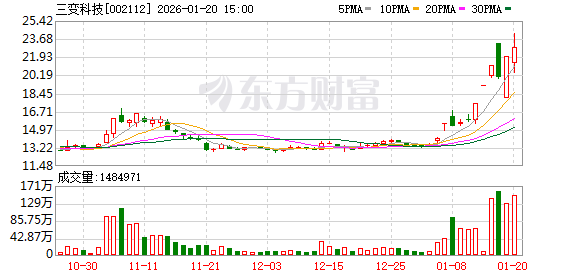 声明:市场有风险,投资需谨慎。本文为AI大模型基于第三方数据库自动发布,任何在本文出现的信 息(包括但不限于个股、评论、预测、图表、指标、理论、任何形式的表述等)均只作为参考,不构成 个人投资建议。受限于第三方数据库质量等问题,我们无法对数据的真实性及完整性进行分辨或核验, 因此本文内容可能出现不准确、不完整、误导性的内容或信息,具体以公司公告为准。如有疑问,请联 系biz@staff.sina.com.cn。 责任编辑:小浪快报 2026年1月20日,三变科技(sz002112)触及涨停,涨停价24.17元,涨幅10.01%,总市值71.09亿元,流 通市值63.34亿元,截止发稿,总成交额28.77亿元。 根据喜娜AI异动分析,三变科技涨停原因可能如下,海外市场拓展+业务多元化+游资机构买入: 1、三 变科技近期公告显示,公司治理规范,内控制度健全。其在欧洲设立子公司,有助于开拓海外市场,提 升国际竞争力。同时,公司新增电动汽车充电基础设施运营、储能技术服务等业务领域,实现业务多元 化发展,这些积极因素为股价上涨提供了支撑。 2、公司主营各类变压器等设备的研发、生产与销售, 产品广泛应用于电力系统、新能源 ...