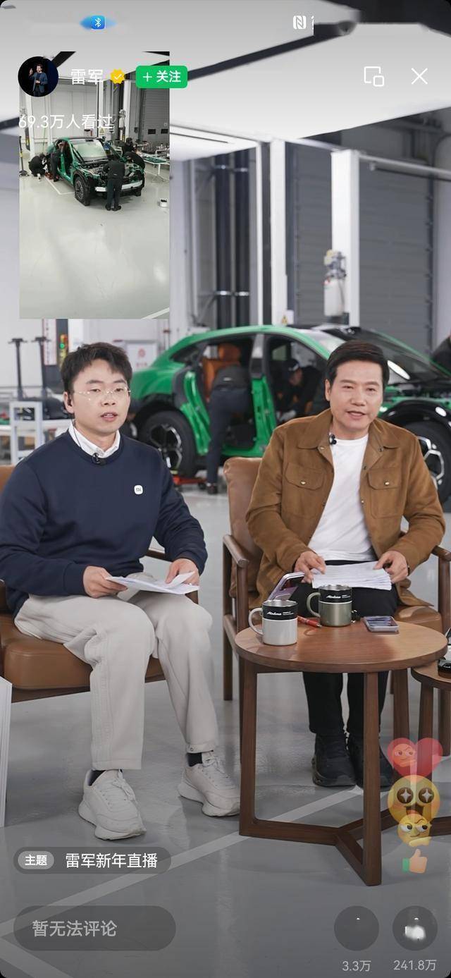 NI � t × P 关注 il 6 41.7 � 0 瑞财经 赵盼盼 1月3日晚间,小米创办人、董事长兼CEO雷军启动2026年第一场直播,现场直播拆一台 新的小米YU7,直播持续大约四五个小时。截至19:30,直播已有103万人观看过。瑞财经全程直击。 对于这个成绩,雷军直言"非常满意",同时他也借这个直播机会感谢所有车主朋友们的支持,也感谢小 米汽车近两万名员工辛辛苦苦的工作。 雷军透露,2025年初,公司定的全年交付任务是30万辆,后来进展比较顺利,提高到35万辆,最后全年 实际交付总数超过了41万辆。 直播现场,雷军介绍,小米汽车工厂是2024年3月正式投产的,4月份开始交付,截至2025年11月底交付 了50万辆车,从0开始,用了不到20个月交付了50万辆,这个数字非常了不起,作为一个新厂商,他觉 得肯定创造了行业的奇迹。 ...