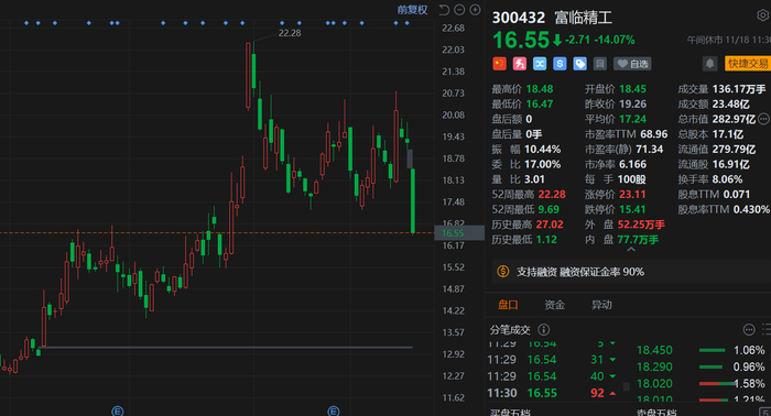 A股异动丨富临精工大跌14% 实际控制人拟减持不超1%股份
