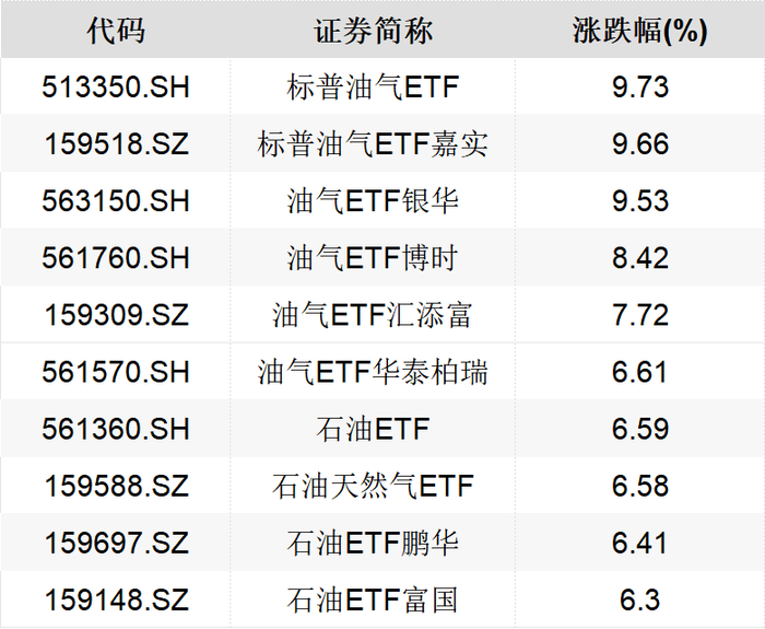 国内成品油零售限价迎来新一轮调整。 根据国家发改委消息,按照现行成品油价格机制,自2月24日24时起,国内汽、柴油价格每吨分别上涨 175元和170元。 卓创资讯成品油分析师许磊表示,国内成品油本轮计价周期以来,地缘紧张局势致使风险溢价主导国际 原油价格走势,国际原油价格一度创下近六个月以来新高。 春节期间受美伊冲突影响,原油价格出现较大幅度上涨,Brent布伦特原油期货主力合约价格从67.45美 元/桶(截至2月13日15:00)上涨至71.61美元/桶(截至2月21日收盘),涨幅达6%,期间价格最高走至 71.86美元/桶。 瑞达期货分析师指出,美伊冲突对原油价格的影响主要通过以下三个机制传导:即地缘政治风险溢价, 这直接影响油价的核心因素;霍尔木兹海峡航运安全,这是影响油价的关键变量;伊朗原油出口变化。 根据历史数据,2025年6月"美伊冲突"期间,布伦特原油因地缘风险带来的溢价在15美元/桶左右(60美 元上涨至75美元附近),涨幅超20%。 受此影响,2月24日,原油主题ETF领涨。截至收盘,富国标普油气ETF、标普油气ETF嘉实、油气ETF 银华的涨幅均超过9.5%,油气ETF博时、油气ETF汇添 ...
