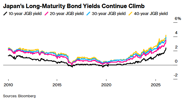 智通财经APP获悉,此前一直是日本政府债券最坚定多头之一的Vanguard Asset Management Ltd.,在 今年年初暂停了对日本长期国债的持续买入。在日本首相高市早苗决定提前解散众议院、主张大幅减税 从而引发日本债市剧烈震荡之前,这家资产管理公司就已退出了相关押注。Vanguard主动型基金国际利 率主管Ales Koutny表示:"这对长期日本国债来说堪称一场完美风暴。一个国家的无资金支持财政支出 是有限度的。" Ales Koutny曾是押注长期日本国债的外国投资者之一,预期日本央行进一步加息将压平收益率曲线, 并推动对长期债券的需求上升。尽管在高市早苗去年10月上台后、日本国债收益率持续攀升的背景下, 仍有不少投资者继续买入,但近期日本国债收益率的再度跳升以及波动率的上行,正在考验投资者的风 险承受能力。 Ales Koutny指出,周二20年期日本国债拍卖需求疲弱,再加上一份报告显示日本寿险公司正在抛售长 期债券,以及围绕进一步财政支出的各种"噪音",共同推动30年期国债收益率大幅上行。 真正令投资者感到不安的是,高市早苗承诺将暂时下调食品消费税,以巩固其在众议院的微弱多数席 位。这一 ...