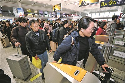 AI 生成 和谐号 978 21 11 Ar ya 2026年春运 2月2日开始,3月13日结束,共计40天。预计全社会跨区域人员流动量将达95亿人次,创历史新高。其 中,铁路、民航客运量预计分别达到5.4亿人次和9500万人次 "在各种交通工具当中,铁路历来是人们重要的出行方式。"国铁集团客运部主任朱文忠说。记者了解 到,今年春运全国铁路预计日均发送旅客1348万人次、同比增长5.0%。 ◎记者 于祥明 陈梦娜 实习生 吴子悠 2026年2月2日,为期40天的春运大幕开启。春运,作为全球运输领域人员流动量最大、最为复杂的系统 工程,每一年都是一次"大考",也是中国经济最具活力的"流量指标"。当日,上海证券报多路记者深入 铁路、民航春运一线,在川流不息的客流大潮中,切身感受春运首日的"暖暖春意"。 据国家发展改革委等多部门综合研判,今年春运全社会跨区域人员流动量将会达到95亿人次,预计创历 史新高。其中,铁路、民航客运量预计分别达到5.4亿人次和9500万人次,总体规模和单日峰值均有望 超过历史同期。 铁路:运力与服务"齐飞" "春运启动当天,东航全天计划执行航班超过3000班次,单日旅客运输量突破42万人次 ...