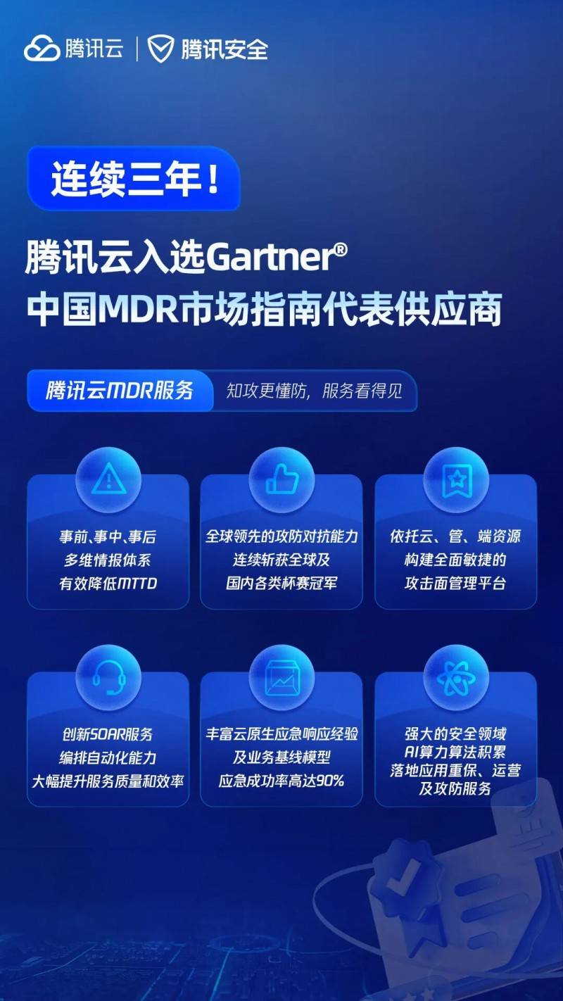 连续三年!腾讯云列入Gartner《中国托管检测和响应服务市场指南》代表供应商