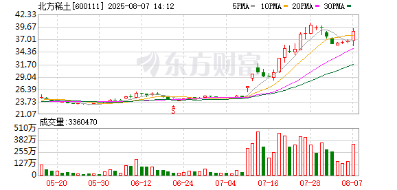 (文章来源:每日经济新闻) 每经AI快讯,8月7日,北方稀土成交额达100亿元,现涨超6%。 ...