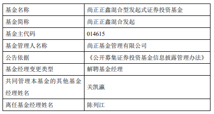 陈列江离任尚正正鑫混合发起 关凯瀛管理
