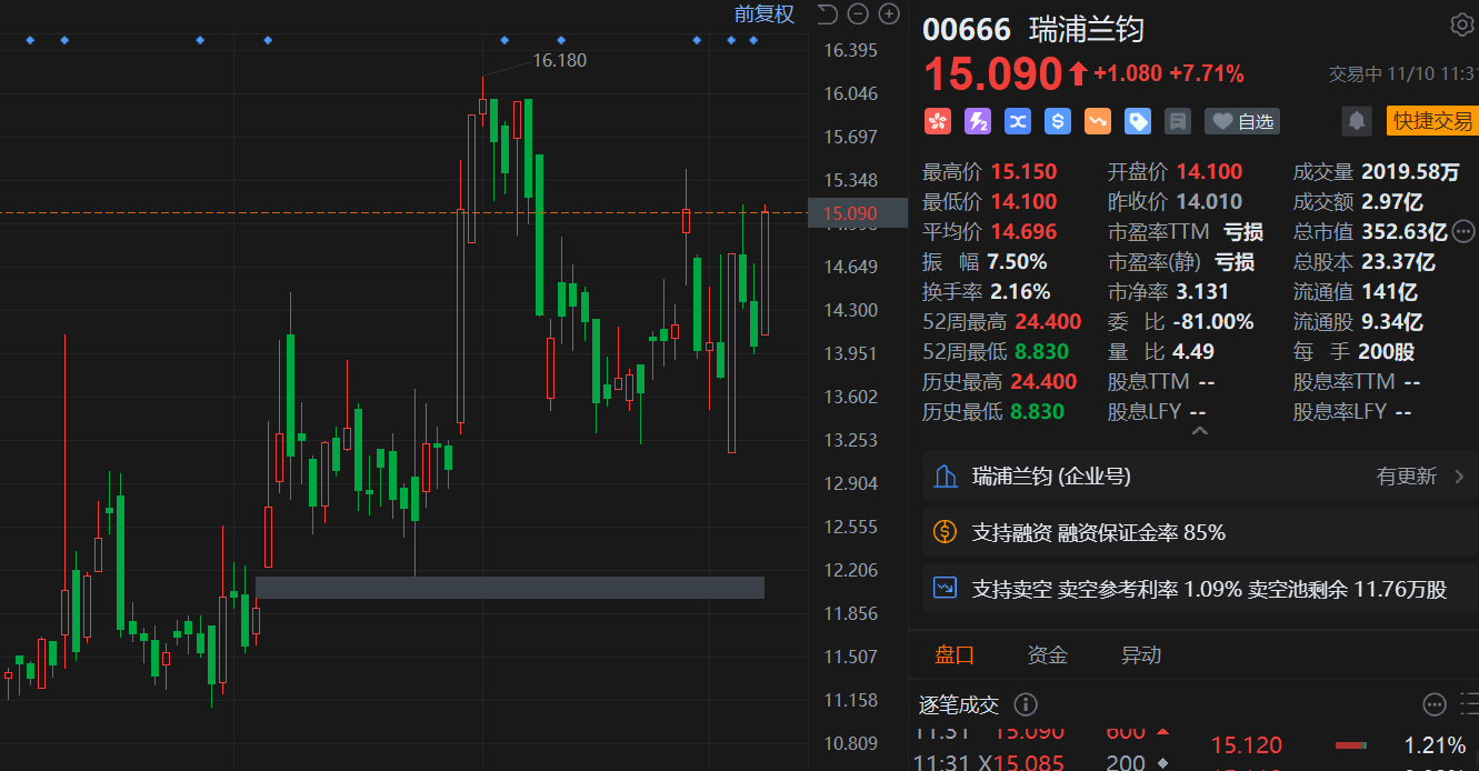 港股异动丨瑞浦兰钧大涨8% 完成配售净筹7.94亿港元 储能市场出货量位于全球前列