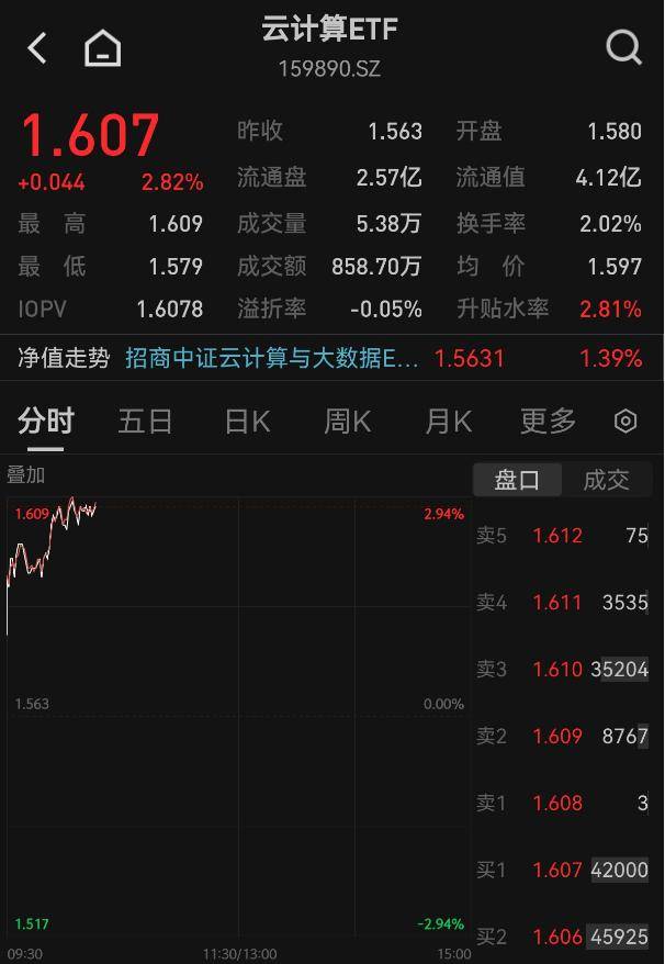 光模块龙头狂拉6%,云计算ETF(159890)飙涨2.82%!算力、模型、应用协同演进,AI算力主线强势回归?