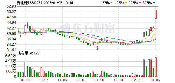 【盘中播报】麦澜德盘中涨停
