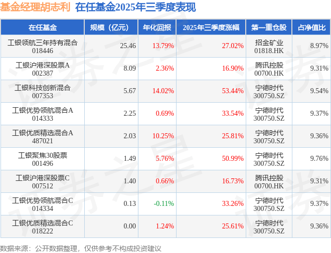 胡志利2025年三季度表现,工银科技创新混合基金季度涨幅53.44%