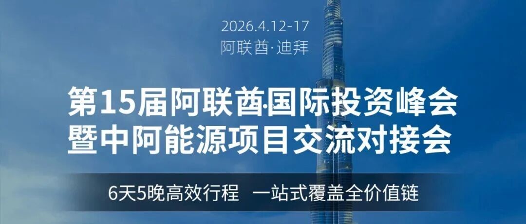 全球领先的多边经贸合作盛会、素有中东达沃斯之称的第15届阿联酋国际投资峰会将于2026年4月 13—15日在迪拜世界贸易中心举行。本届峰会由阿联酋外贸部、迪拜商会、AIM全球基金会联合 主办,主题为"重塑全球繁荣:开启投资新路径,迈向可持续与包容的未来",预计将吸引来自全 球180多个国家,2000家以上各类机构的参与。 在第15届阿联酋国际投资峰会同期,为进一步推动中国与阿联酋在能源领域,特别是油气、可再 生能源、电力电网、能源数字化等方面的投资与合作,中国能源报、AIM全球基会将于4月12—17 日(共计6天5晚),组织开展中阿能源项目交流对接会以及有关商务考察活动,汇聚中阿两国政 府代表、能源领域专家、投资机构及领先企业,共同探讨能源转型、项目合作与跨境投资机遇。 在此,诚邀能源产业链企事业单位代表出席第15届阿联酋国际投资峰会暨中阿能源项目交流对接 会。本次活动将涵盖峰会参与、企业路演、资本对接、圆桌洽谈、高级别商务晚宴、深度商务考 察等丰富环节,并将参会企业纳入阿拉伯地区优质供应商资源库,助力企业精准对接阿联酋市 场,推动务实合作与长远布局,融入中东地区能源转型生态,共谱"一带一路"能源合作新篇章。 ...