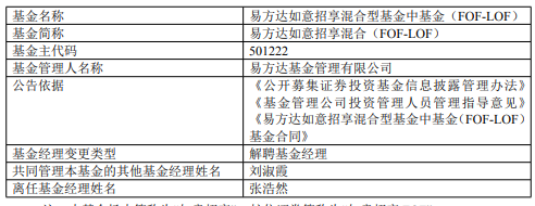 张浩然离任易方达如意招享混合(FOF-LOF)
