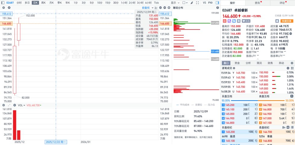 从87%首日涨幅到152港元目标价,卓越睿新(02687)如何用14天完成港股通准入冲刺?