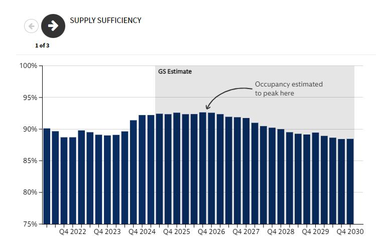 随着市场对美股科技巨头大举投资人工智能基础设施的风险愈发担忧,高盛集团也在近期发出警告称,如 果科技行业无法推动AI应用需求爆发,并成功将人工智能模型变现,众多科技巨头对数据中心的大举投资 可能会血本无归。 数据中心的投资回报率令人担忧 受到人工智能驱动的计算资源需求的推动,全球人工智能数据中心设施的建设热潮不断。分析机构Omdia 上周表示,由于人工智能,到2030年,数据中心的资本支出预计将达到1.6万亿美元,这意味着从现在起每 年增长17%。 但大举兴建的数据中心究竟能带来多少投资回报率(ROI),这一疑问萦绕在越来越多人心头。 随着更多数据中心投入运营,高盛研究部的基本预测是,未来18个月内供需平衡将显著收窄。预计到2026 年,数据中心占用率将保持在峰值水平。 高盛集团高级股票分析师吉姆·施奈德(Jim Schneider)在报告中表示:"许多投资者都在努力应对这种炒 作,并试图量化这一切意味着什么。" 他对从现在到2030年数据中心领域可能的发展,给出了四种假设情景。 总体而言,高盛看到了数据中心在未来几年可能会面临的两大需求端风险:AI模型变现困难导致的需求降 温,和云服务需求降温。 而其基本的 ...