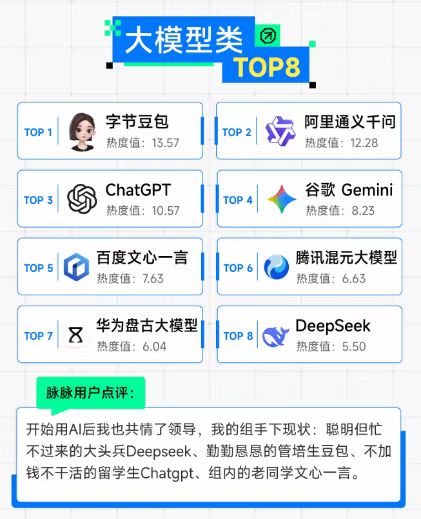脉脉发布《AI白皮书》:豆包、通义千问、ChatGPT位列大模型关注度TOP3