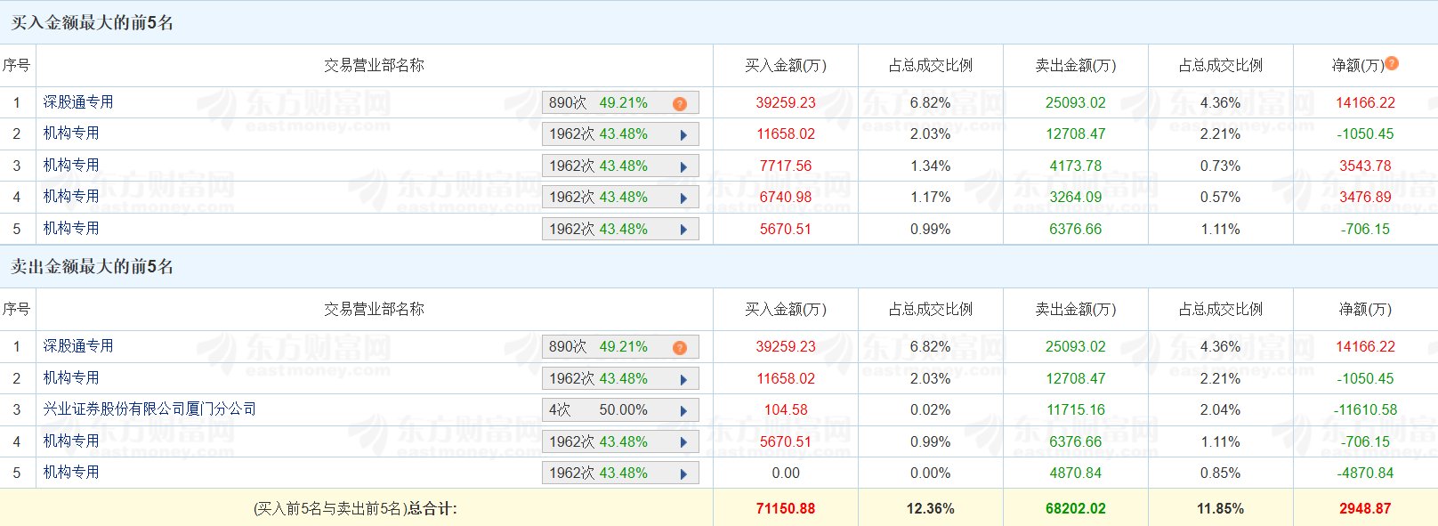 铜陵有色(000630.SZ)今日涨停,换手率7.79%,成交额57.57亿元。龙虎榜数据显示,深股通买入3.93亿元,卖出2.51亿元,净买入1.42亿元;五家机构买入 3.18亿元,卖出3.14亿元,净买入393万元;游资"低位挖掘"位列卖三席位,净卖出1.16亿元。(格隆汇) | 序号 | 交易营业部名称 | | 买入金额(万) | 占总成交比例 | | --- | --- | --- | --- | --- | | 深股通专用 | | 890次 49.21% 2 | 39259.23 | 6.82% | | 2 机构专用 | eastmoney.con | 1962次 43.48% | 11658.02 | 2.03% | | 3 机构专用 | | 1962 43.48% | 7717.56 | 1.34% | | 机构专用 ব | | 1962次 43.48% A | 6740.98 | 1.17% | | 5 机构专用 | | 1962 43.48% | 5670.51 | 0.99% | | 序号 | | 交易营业部名称 | | | 买入金额(万) | 占总成交比例 | | --- | --- ...