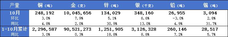 10月秘鲁铜产量同比增加4.8% 金银铅锌锡10月产量同比均增