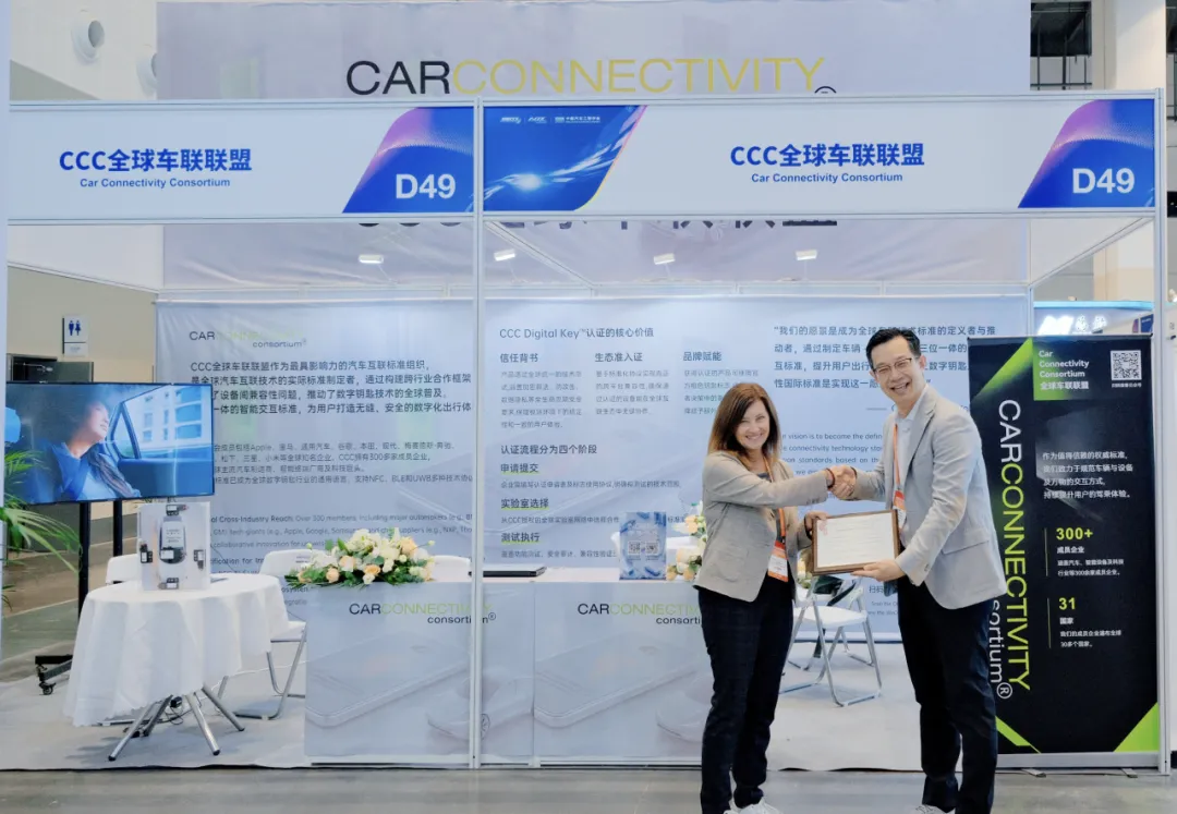 CCC总裁Alysia为银基科技CEO单宏寅颁发证书 银基科技长期深耕汽车数字钥匙平台研发,与多家车厂紧密合作推动解决方案量产落地。此次获得的CCC认证是全球数字钥匙领域的权威认可,标志 着银基科技的技术实力已达到国际先进水平。特别值得关注的是,银基数字钥匙平台已被 CCC Digital Key?列入兼容性测试设备清单(IDL, Interoperability Device List)。IDL设备作为可信的"黄金参考设备",用于对照已知基准验证新实施方案的符合性与互操作能力,构成了整个数字钥匙生态 系统互操作性测试的基准基础。 近日,CCC全球车联联盟(Car Connectivity Consortium)东亚首张汽车数字钥匙认证正式诞生,银基科技(INGEEK)凭借其卓越的技术实力成功获 得此项认证,成为中国首家获此殊荣的科技企业。在本次认证过程中,银基科技获得了DEKRA德凯在测试验证方面的专业技术支持。此次获得的CCC Digital Key?认证是全球数字钥匙领域的权威认可不仅是银基科技在数字钥匙领域持续创新的成果体现,更将助力主机厂在研发环节实现降本增效,为中 国汽车产业的智能化转型提供切实可 ...