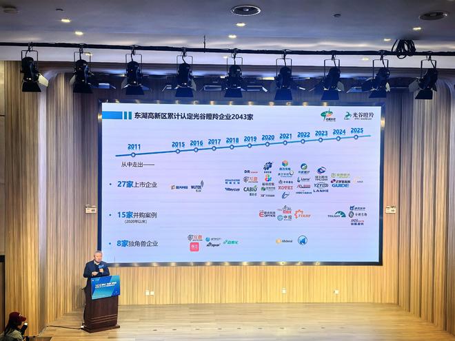 新认定瞪羚企业505家,平均研发强度达25.8%,研发人员占比为45.2%,近五年融资超370亿元……1月 30日下午,《2025光谷瞪羚企业发展报告》(下称《报告》)发布了上述成绩。 糖智药业总经理曹雪峰告诉第一财经,就在上个月,公司完成了A+轮融资交割,总金额超过1亿元。 记者注意到,这家企业创始人王鹏的另一个身份是南方科技大学教授,主攻化学酶法合成生物学。《报 告》显示,部分光谷瞪羚企业脱胎于高校科研人员的成果转化,其核心技术深植于实验室长期积累的原 创科研成果。这些技术成果经过严谨理论验证与多轮实验迭代,不仅技术起点高,更具备扎实的研发根 基。同时,光谷瞪羚又结合市场需求,凭借"硬核技术+精准需求"双向赋能,快速打通"研发攻关-产品 落地一市场拓展"成长路线,实现高质量发展。 《报告》显示,505家光谷瞪羚企业实现营业收入177.1亿元,同比增长34.4%,高于全国高技术产业专 精特新"小巨人"企业近25个百分点;利润总额18.7亿元,利润率13.9%,是全国规上工业专精特新"小巨 人"企业利润率的近2倍。 过去一年,光谷瞪羚新增授权发明专利2714件,2043家光谷瞪羚合计拥有授权发明专利13500 ...