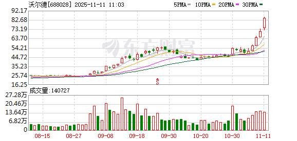 10月30日公司发布的三季报数据显示,前三季公司共实现营业收入5.39亿元,同比增长9.05%,实现净 利润7140.34万元,同比下降6.67%。(数据宝) 注:本文系新闻报道,不构成投资建议,股市有风险,投资需谨慎。 (文章来源:证券时报网) 科创板个股中,截至发稿上涨的共有319只,涨幅在10%以上的共有6只,涨幅较高的有沃尔德、神工股 份、金迪克等,分别上涨20.01%、20.00%、12.25%,下跌的有269只,跌幅较大的有金盘科技、嘉元科 技、普冉股份,分别下跌6.61%、5.77%、5.32%。 资金面上,沃尔德上一交易日主力资金净流入6402.33万元,近5日净流入4379.61万元。 融资融券数据显示,该股最新(11月10日)两融余额为7.37亿元,其中,融资余额为7.37亿元,较上一 个交易日增加4089.09万元,增幅为5.87%;近10日两融余额合计增加1.97亿元,增幅为36.41%,其间融 资余额增长36.41%。 11月11日盘中科创板股沃尔德涨停,截至10:30,股价报85.36元,成交9.26亿元,换手率7.76%,振幅 18.53%。 ...