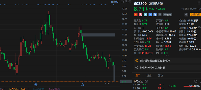 A股异动丨海南华铁一字跌停 36.9亿算力大单告吹