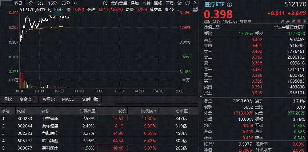 ETF盘中资讯|AI医疗涨势如虹!阿里健康暴拉10%,港股通医疗ETF(159137)冲击3%!美年健康4连板,A股最大医疗ETF阶段新高