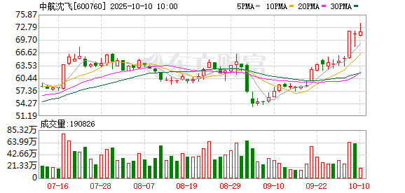 每经AI快讯,10月10日,中航沈飞盘初涨超2%,报72.7元/股,股价再创新高,总市值突破2060亿元。 (文章来源:每日经济新闻) ...