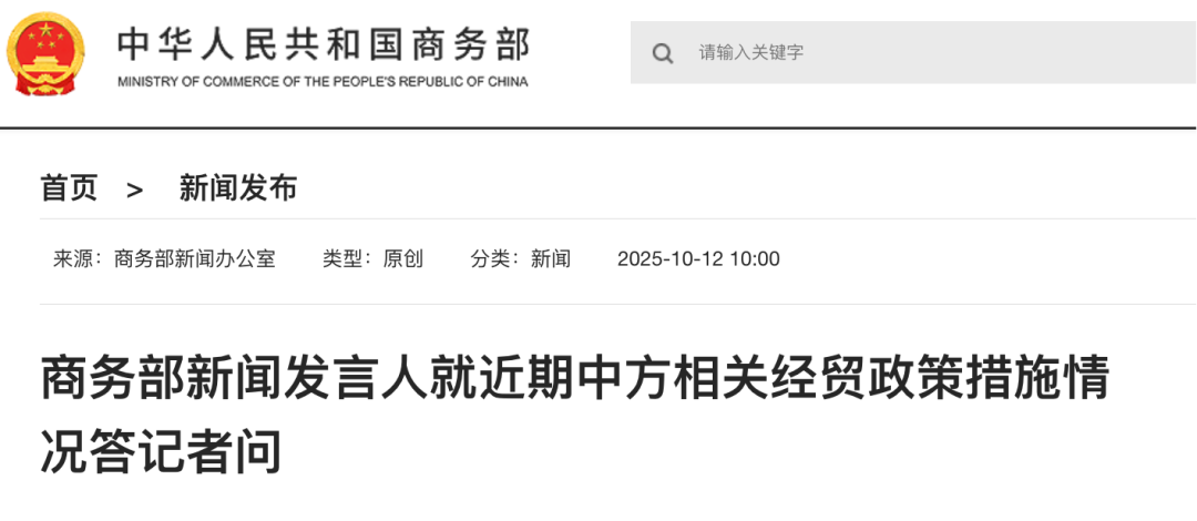 商务部新闻发言人最新发声。 10月12日,商务部新闻发言人就近期中方相关经贸政策措施情况答记者问。具体如下: 1.有记者问:10月9日,商务部、海关总署发布公告,对相关稀土物项实施出口管制。请问中方有什么考虑? 答:中方发布了关于稀土等相关物项的出口管制措施,这是中国政府依据法律法规,完善自身出口管制体系的正当做法。当前世界局势动荡不安,军事冲 突时有发生,中方注意到中重稀土相关物项在军事领域有重要应用。中国是负责任大国,依法对相关物项实施出口管制,目的是更好维护世界和平与地区 稳定,履行防扩散等国际义务。 中国的出口管制不是禁止出口,对符合规定的申请将予以许可。在措施公布前,中方已通过双边出口管制对话机制向各有关国家和地区作了通报。中方愿 与各国加强出口管制对话交流,更好维护全球产业链供应链安全稳定。 2.有记者问:我们注意到,近日商务部发布公告加强稀土等相关物项出口管制,请问后续将如何实施? 答:中国作为负责任大国,始终坚定维护自身国家安全和国际共同安全,始终秉持公正、合理原则立场,审慎适度实施出口管制措施。中方事先已就措施 可能对产供链产生的影响进行了充分评估,并确信相关影响非常有限。措施出台前,中方已 ...