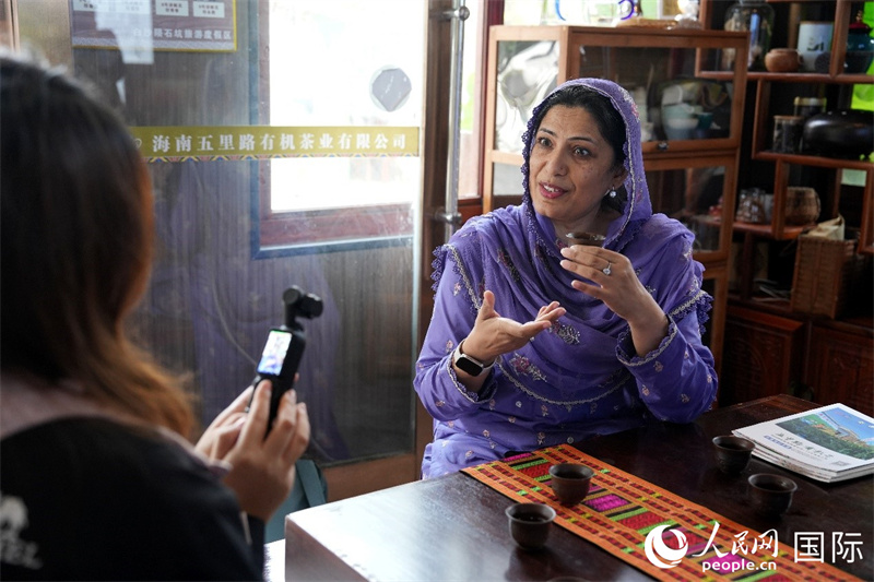 人民网白沙11月26日电 (记者陈思、宋歌) "这白茶有淡淡的枣香和药香,我从没喝过这样的味道。入口很 柔和,还有甜甜的回甘……"在"中国生态茶叶之乡"海南省白沙黎族自治县,人民网外籍专家萨拉品尝黎族大白茶 后分享了她的感受。 白沙地处海南热带雨林国家公园腹地,约70万年前,一颗直径380米的小行星撞击地球形成了方圆十公里的白 沙陨石坑,独特的地理环境赋予了白沙茶叶丰富的口感以及更高的微量元素含量。在距离陨石坑撞击点2.5公里处 的五里路有机茶园,人民网外籍专家们身穿黎族民族服饰变身采茶农,学习传统制茶技艺,探秘独特的陨石坑茶 文化。 黎族先民自古以来就有爱喝大叶茶的习惯。五里路有机茶园创始人符小芳是一名土生土长的海南黎族人,从 种茶伊始,就始终坚持严格按照国际有机生产的方式进行田间种植管理以及制茶。经过多年的努力,从2015年起 通过中国有机认证、欧盟有机认证(EU),日本有机认证(JAS),加拿大有机认证(COR)。近年来茶园积极 开发茶旅融合项目,将有机茶生产过程体验、黎族文化体验及休闲康养等项目融合一体,2024年接待游客8.1万人 次,2025年预计可接待游客量达10万人次。 人民网外籍专家瓦利德表 ...