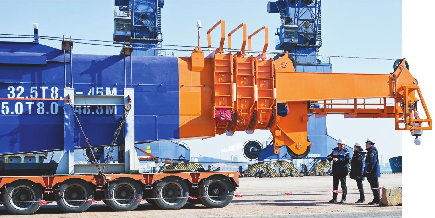 (来源:辽宁日报) 转自:辽宁日报 针对此次出口大型设备体积大、出运装载难度大的情况,金普海关提前与企业会商,制订安全装船方案,指导企业用好"提前申报""两步申报"等通关便利措 施,将海关监管嵌入港口作业流程,保障超长、超高、超宽的"大块头"机械设备安全高效抵港直装。 本报记者 王荣琦 文 杨见宇 摄 日前,在大连海关所属金普海关监管下,由大连石岛工业有限公司生产的一台大型伸缩臂吊机在大连港顺利装船启运,出口至欧洲。 本次出口的吊机用于海上风力发电机安装工作。它采用四节伸缩臂模式,最短吊重距离为8米,最长伸出距离为50米,总起重量达32.5吨,是目前全球海工 市场起重量最大的伸缩臂吊机。该吊机的伸缩臂采用高强板折弯焊接,且平行度和平面度达到国内该长度下的最高精度,是众多"中国制造"起重机中名副其 实的"大国重器"。 ...
