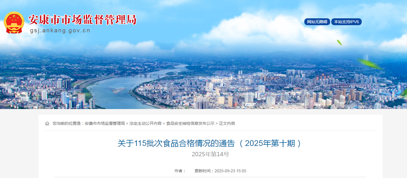 陕西省安康市市场监督管理局关于115批次食品合格情况的通告 (2025年第十期)