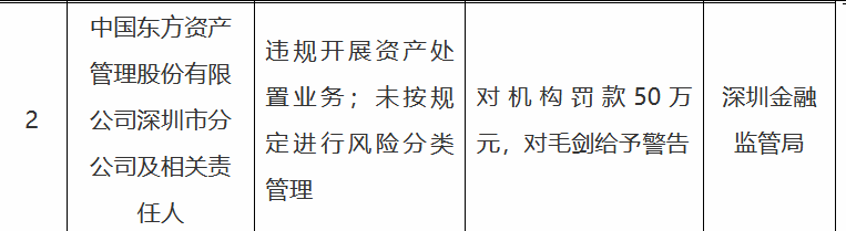 违规开展资产处置业务!中国东方资产深圳分公司收罚单