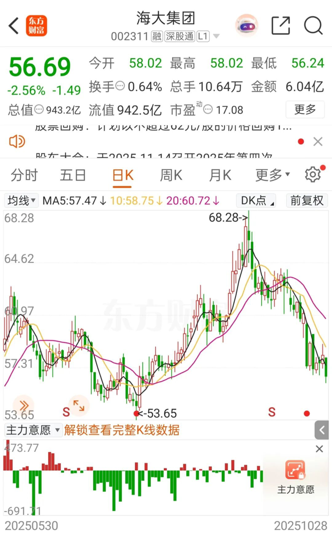【导读】海大集团拟回购10亿元至16亿元股份 见习记者夏天 A股市值跌破千亿元后,海大集团(证券代码:002311)放出"回购+注销"的大招。 10月28日晚间,海大集团公告称,拟以自筹资金回购10亿元至16亿元A股股份,回购价格不超过62.00 元/股。其中10亿元回购股份将用于注销并减少注册资本,超过10亿元的回购股份将用于实施股权激励 计划及/或员工持股计划。 对于此次回购股份的目的,海大集团表示是基于对公司未来发展前景的信心以及对公司股票价值的认 可,以增强投资者信心,提高股东回报,优化公司治理结构,同时进一步建立健全公司长效激励与约束 机制,确保公司长期经营目标的实现。 截至10月28日收盘,海大集团报56.69元/股,下跌2.56%,总市值为943亿元。 拟回购至多16亿元股份 根据公告,海大集团于10月28日召开了第七届董事会第四次会议,审议通过了《关于以集中竞价方式回 购公司股份方案的议案》。 公司拟以自筹资金,通过集中竞价方式回购公司股份,资金总额不低于10亿元且不超过16亿元,回购价 格不超62.00元/股。本次回购股份将用于注销减少注册资本及实施股权激励或员工持股计划,其中10亿 元用于 ...