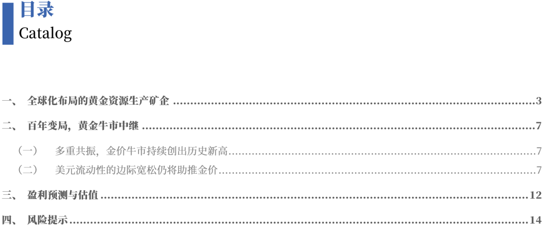 3. 流动性盛宴与"去美元"实质化,黄金牛市有望延续。 核心观点 公司是一家快速成长的国际化黄金生产商,主要在全球范围内从事黄金的采、选和销售业务:公司在全球范围内运营6座黄金矿山和1座多金属矿山,矿山 版图主要位于中国、东南亚与西非等地区。其中、公司旗下吉隆矿业、五龙矿业、华泰矿业和锦泰矿业是国内的黄金矿山,专注于黄金采选业务;瀚丰矿 业是国内的多金属矿山,聚焦锌、铅、铜、铝等多金属的采选;位于老挝的控股子公司万象矿业以金、铜矿的开采和冶炼为核心;位于加纳的控股子公司 金星瓦萨主营黄金采选;位于老挝的勐康稀土矿专注于稀土资源的开发。此外,公司控股子公司广源科技属于资源综合回收利用行业,专注于废弃电器电 子产品处理业务。根据公司2024年年报披露,公司自有矿山共计拥有黄金资源量390.1吨、铜资源量10.3万吨、铅资源量2.5万吨、锌资源量55.4万吨、铝资 源量7.9万吨、稀土资源量6.4万吨REO。 【报告导读】 金价上涨驱动公司业绩大幅增长:随着公司收购海外矿山矿产金产量的逐步释放,以及2022年后黄金价格进入新一轮牛市的影响,公司营业收入与归母净 利润都出现了明显的增长。公司营业收入从2020年的45 ...