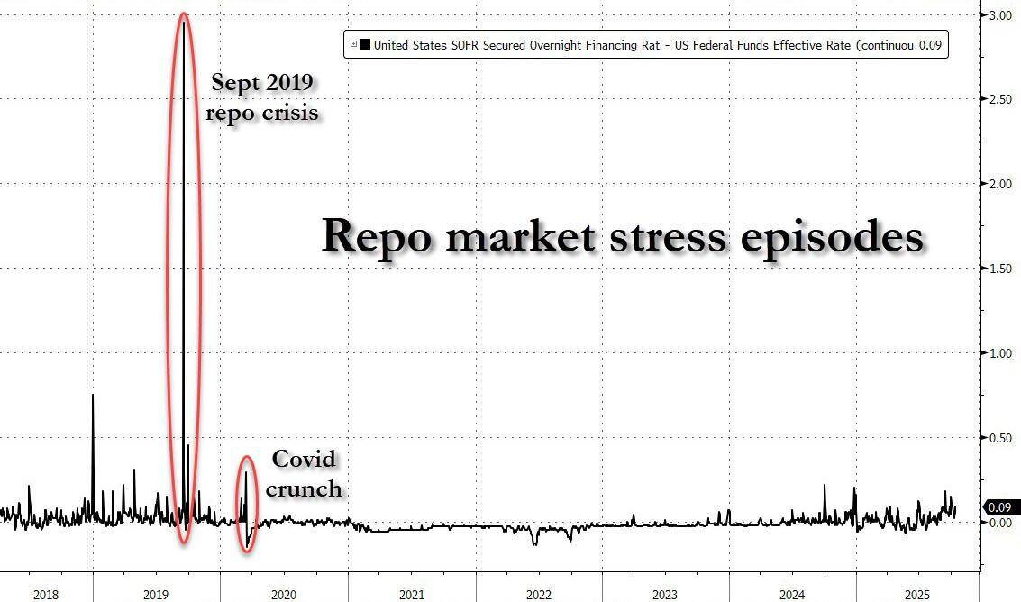 美联储尚未决定下一步的降息节奏,市场却已率先敲响流动性警钟。 就在本周三早晨,美联储的常备回购便利工具(SRF)突然被大规模启用,单日操作规模达67.5亿美元,为今年二季度末以来最高,也是在非季末环境下自 疫情以来的最大规模。 分析称,种种迹象显示,金融体系正从"流动性充裕"迈入"流动性紧张"区间,下一场资金危机或许比想象中更近。 银行准备金跌破3万亿,美联储被迫"放水"预期升温 美联储在9月的联邦公开市场委员会(FOMC)会议上决定降息,但主席鲍威尔并未给出未来宽松路径的明确承诺,导致市场部分解读为"鹰派降息"。 但就在这之后几天,更重要的一件事发生了:联储体系中的银行准备金总额首次跌破3万亿美元。这一关口被多位联储官员视为"充裕准备金"与"紧张准备 金"的分水岭。 分析称,一旦准备金变得稀缺,银行融资链条将面临压力,回购市场可能失灵,甚至引发系统性震荡。2019年9月的回购市场危机便是因流动性回撤过快所 致,堪称前车之鉴。 | Results | | | | | | 10/15/2025 | | | --- | --- | --- | --- | --- | --- | --- | --- | | Ope ...