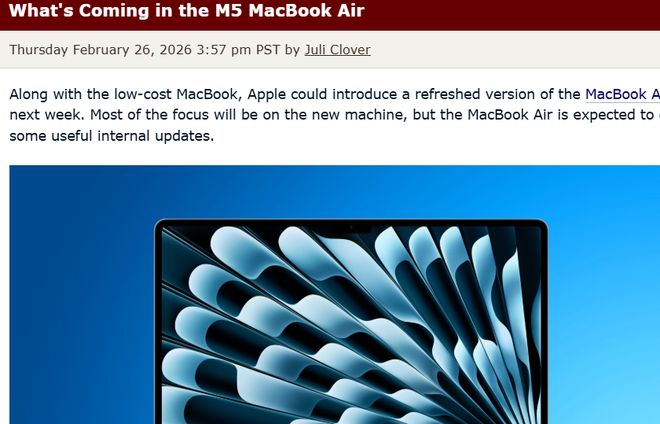 苹果M5芯片MacBook Air核心参数曝光,续航或有惊喜